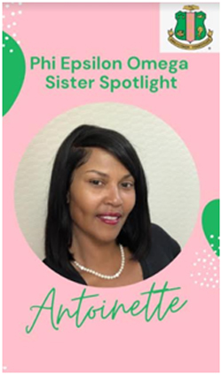 De'Onna has nearly 20 years of serving and looks forward to serving alongside her daughter, A'Mari, a recent graduate who has transferred to Phi Epsilon Omega Chapter from her undergraduate chapter Gamma Psi at Texas Southern University.